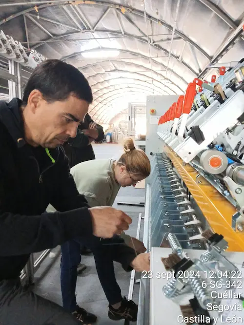 Uno de los hitos más relevantes en este periodo ha sido la puesta en marcha del centro de transformación de lana OVINTEGRAL, ubicado en Arroyo de Cuéllar (Segovia). Equipado con tecnología de última generación, este centro permite un procesado integral de la lana, desde el lavado inicial hasta el hilado final, reduciendo la dependencia de procesos externos y aumentando la competitividad de la lana española en mercados de alto valor. Todo un gran desafío para los socios del proyecto que han invertido largas jornadas de trabajo en formarse y poner en funcionamiento cada una de las maquinas que componen la línea de transformación.